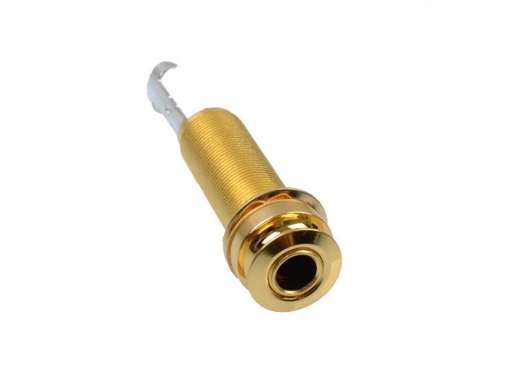Гнездо подключения универсальное Jack 6,35 прямое длинное золотистое 3-х контактный
